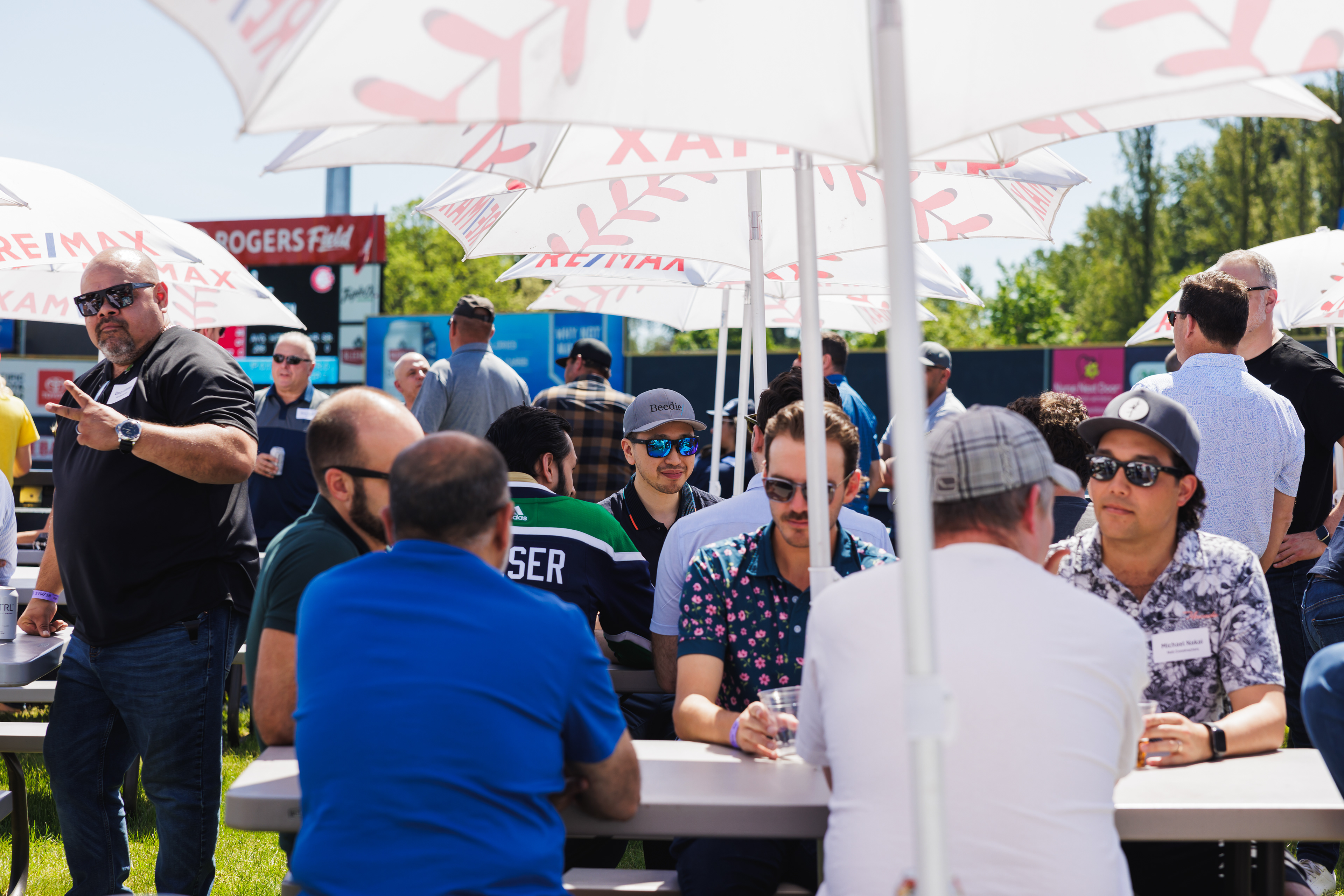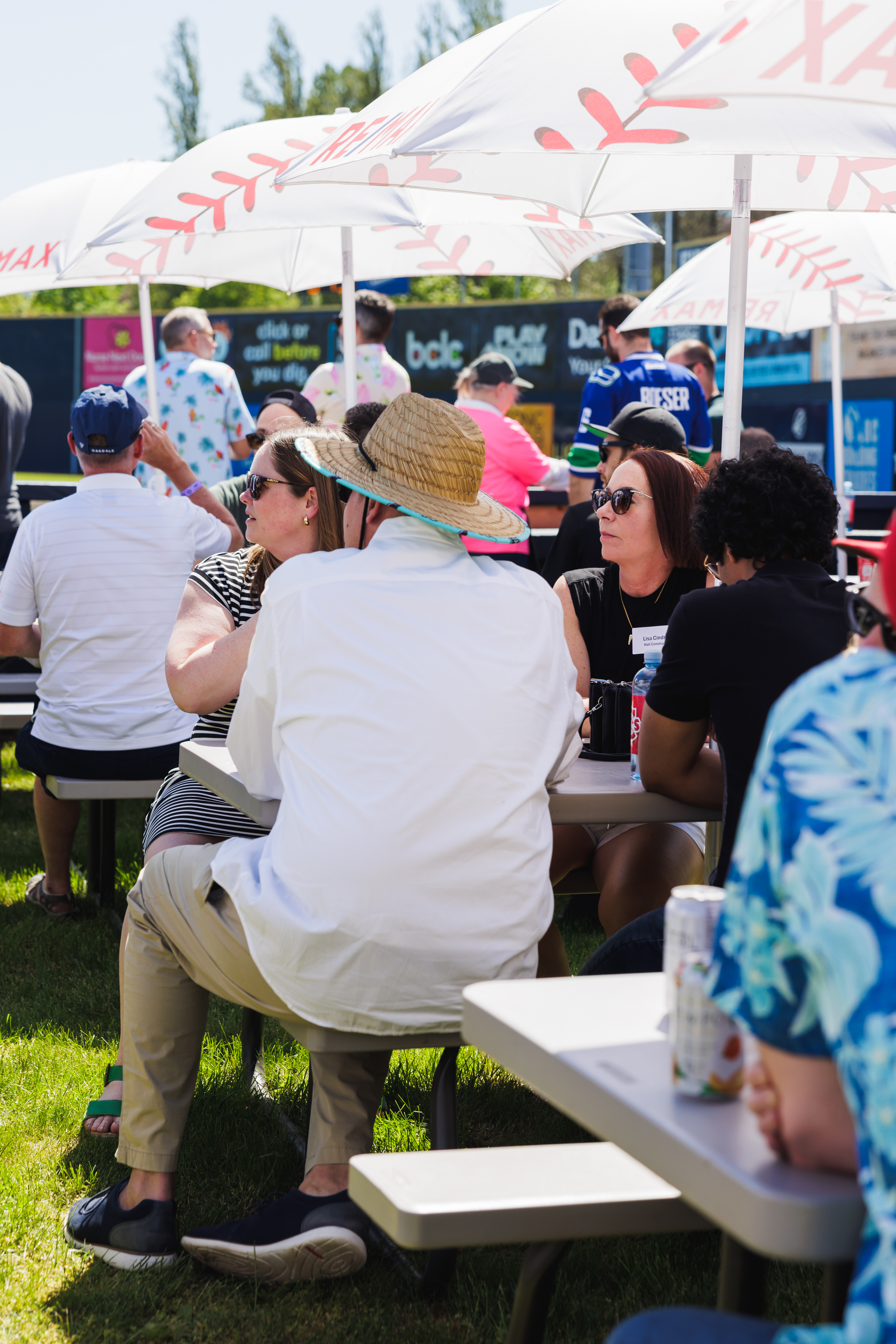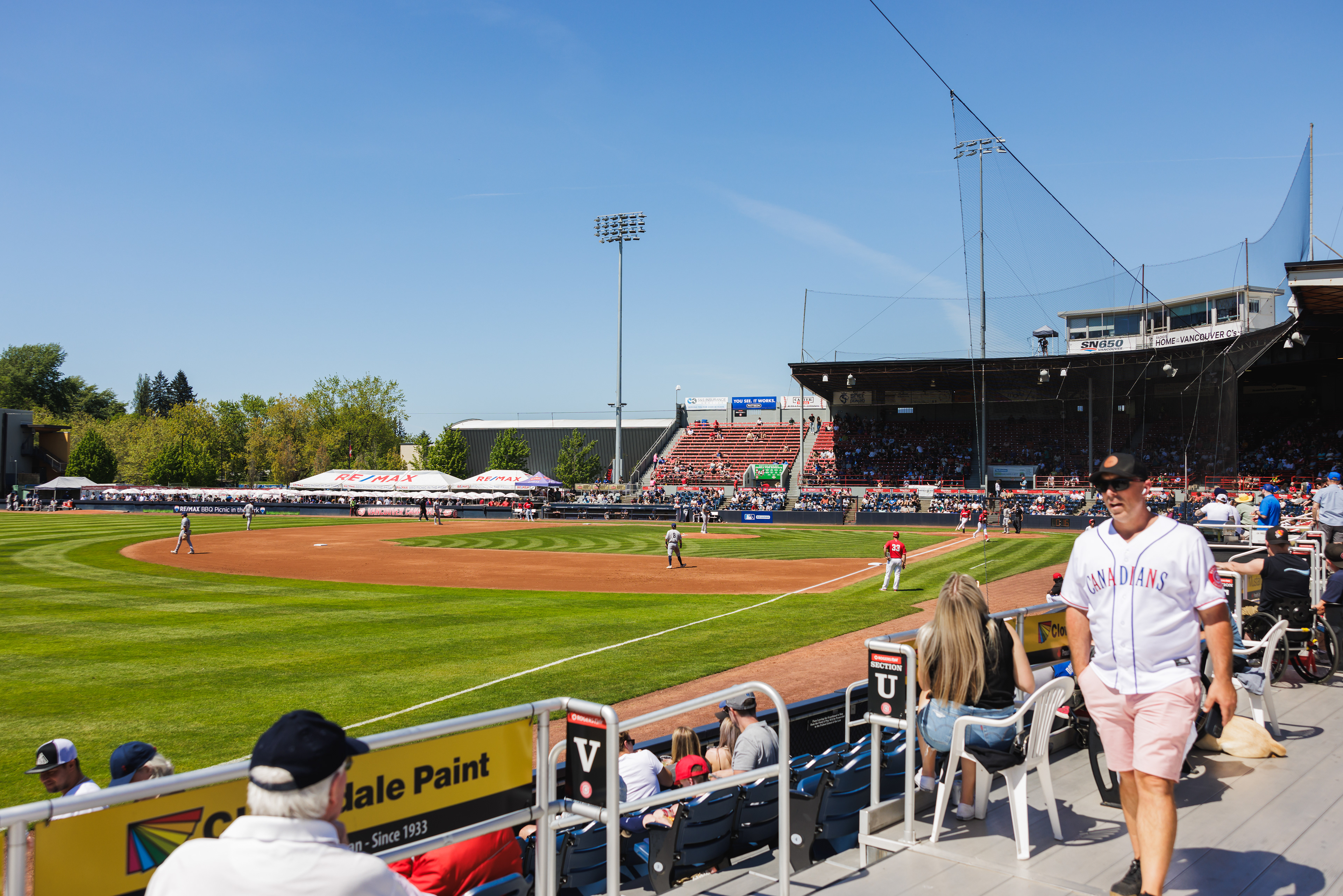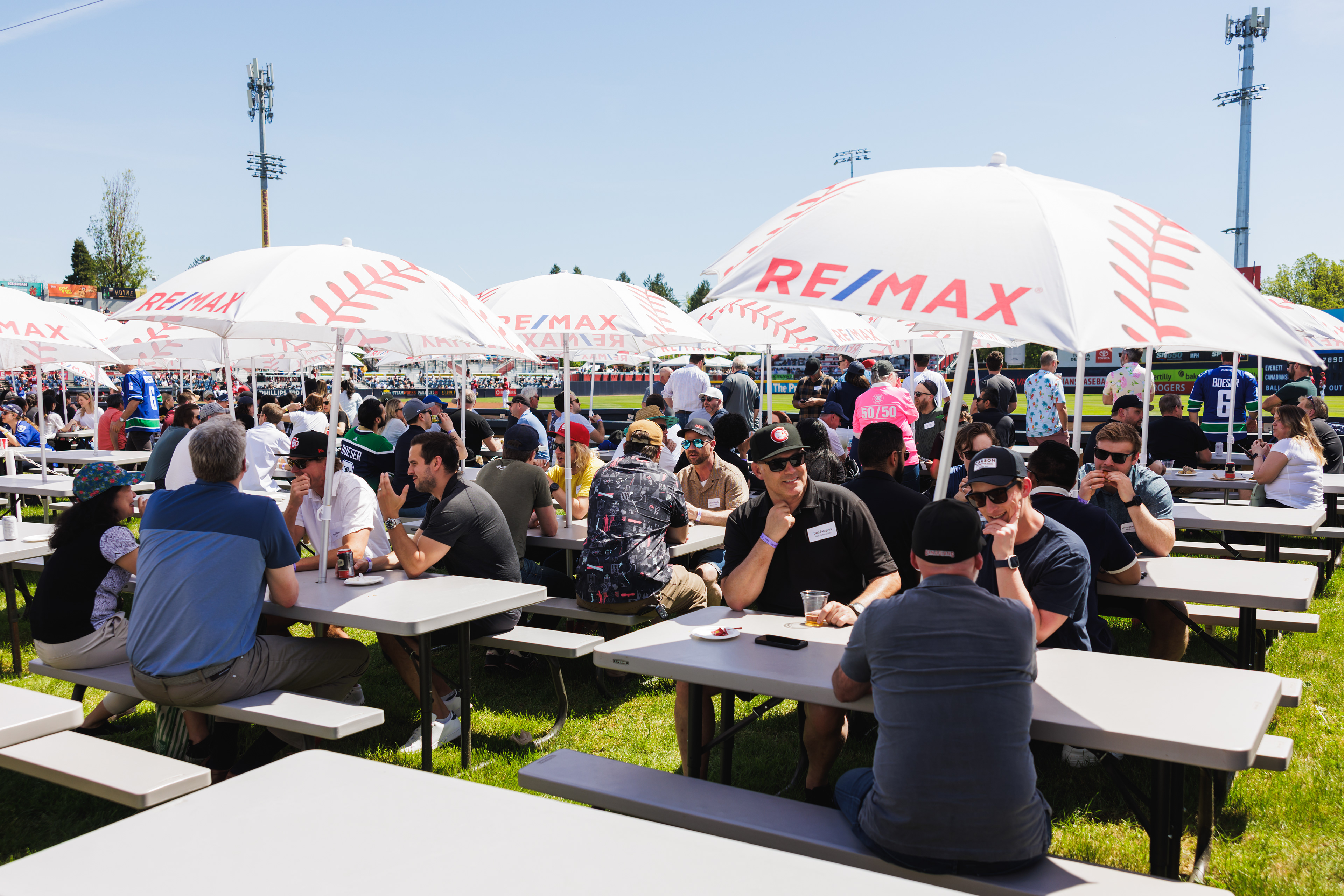 The RE/MAX BBQ Picnic in the Park is a semi-private area at Nat Bailey Stadium where guests can enjoy an all-you-can-eat BBQ picnic feast, drinks & more right beside the first base line.