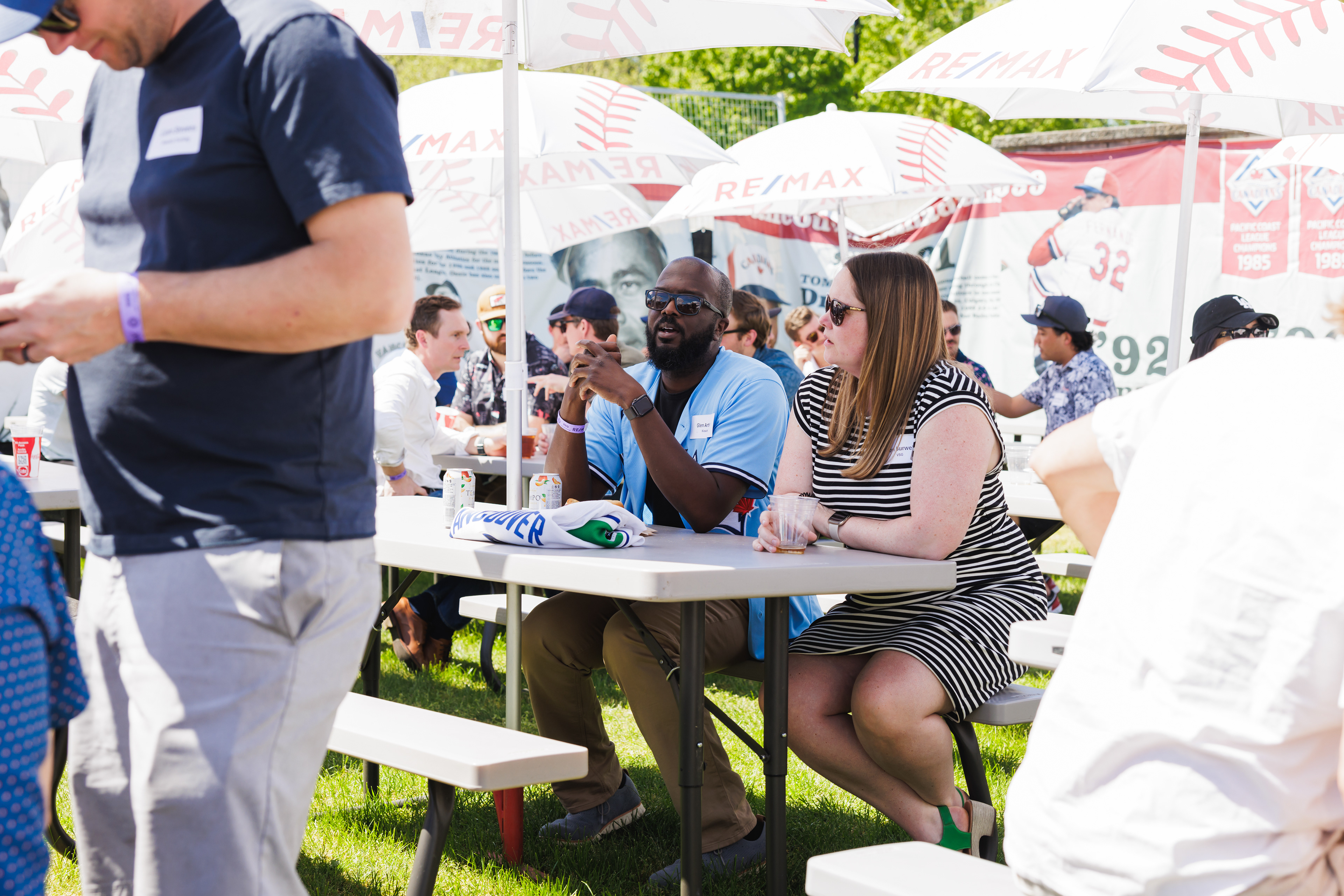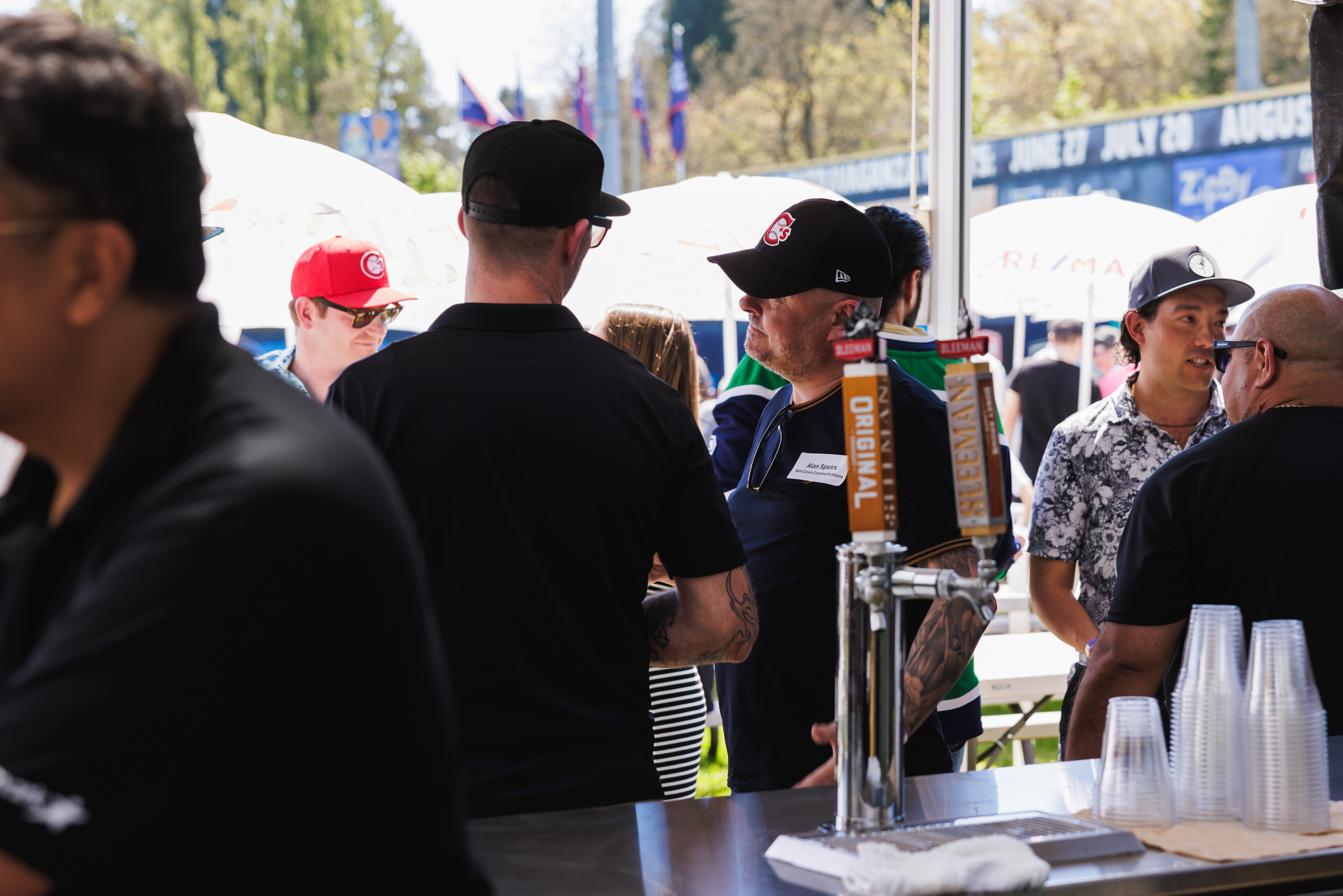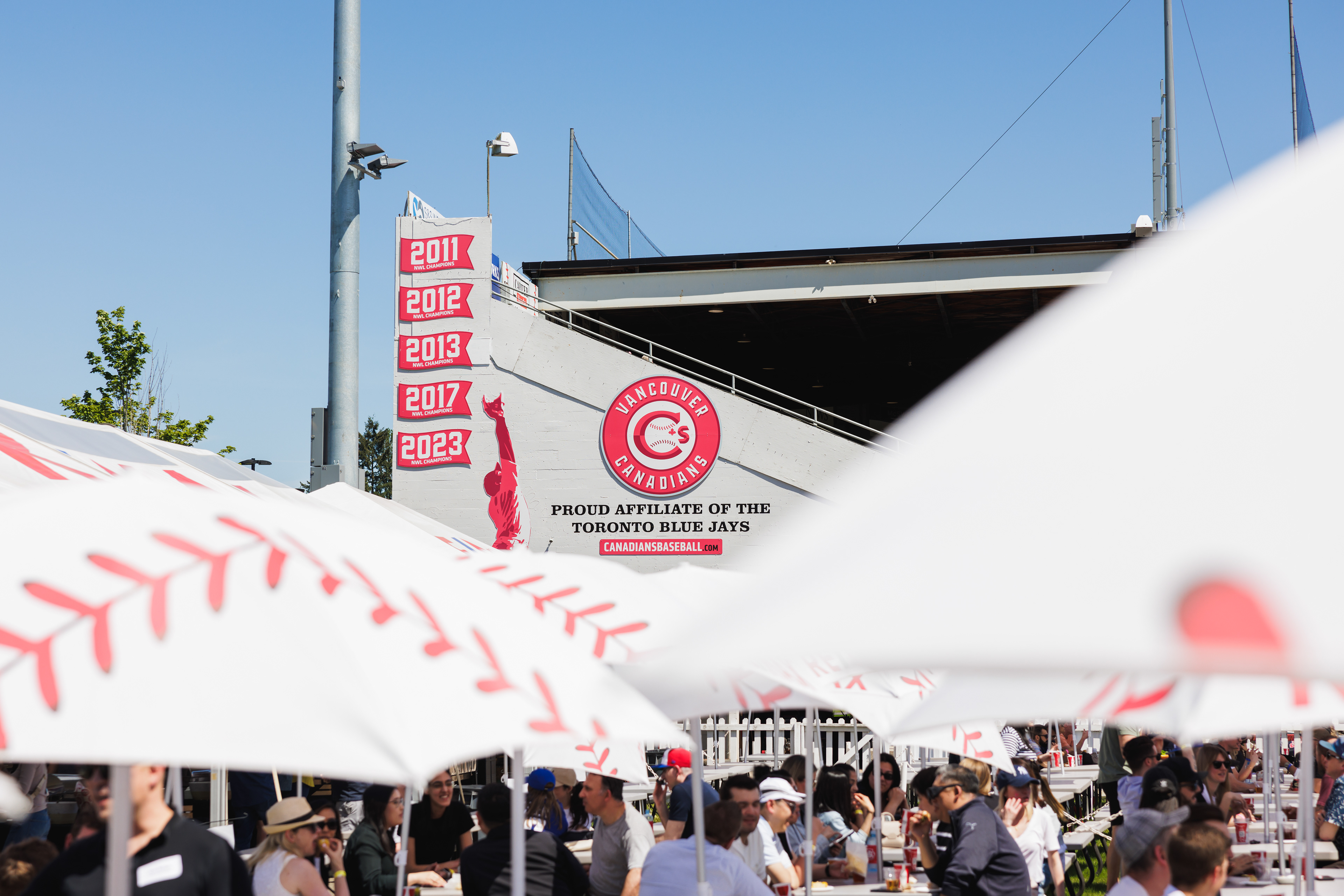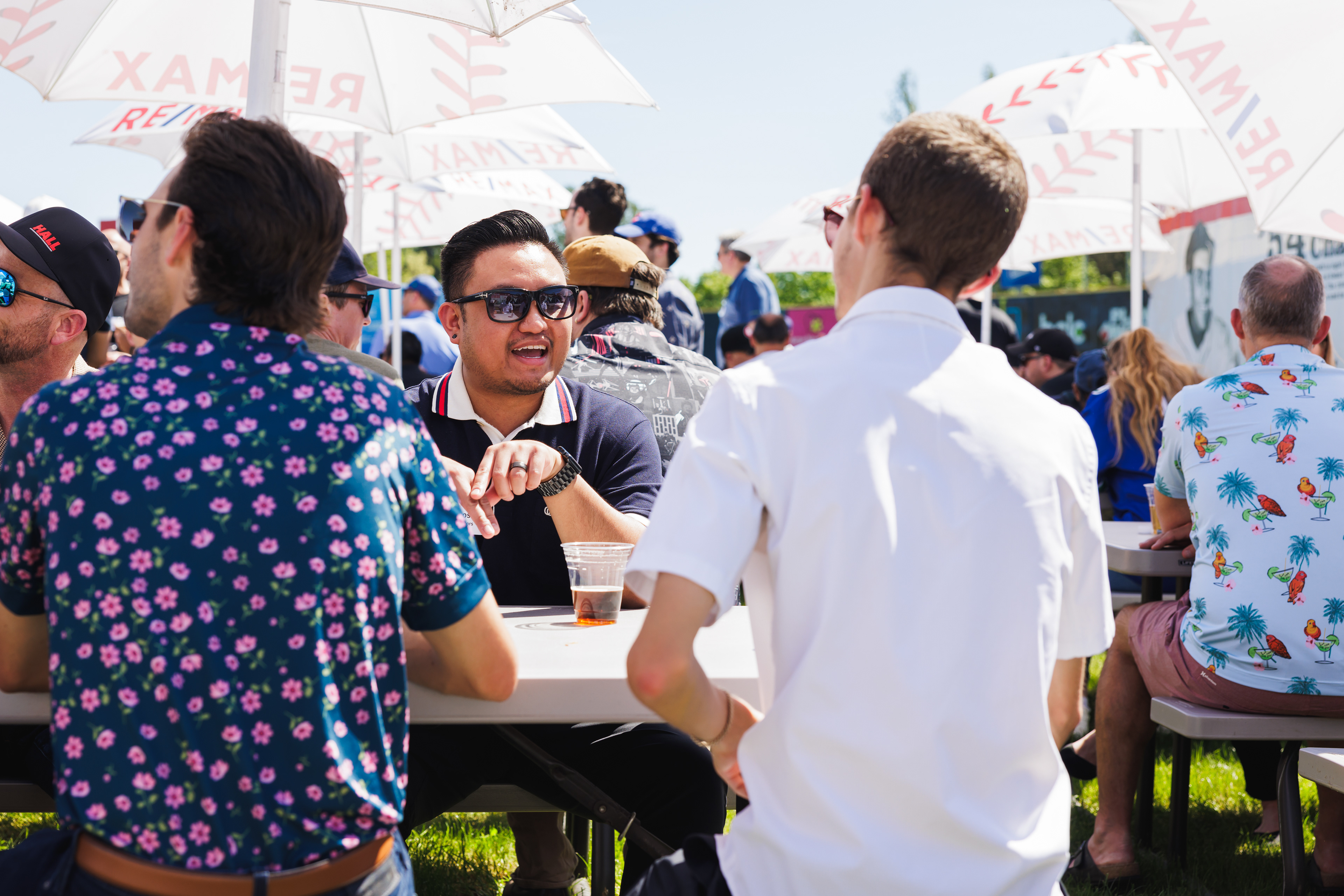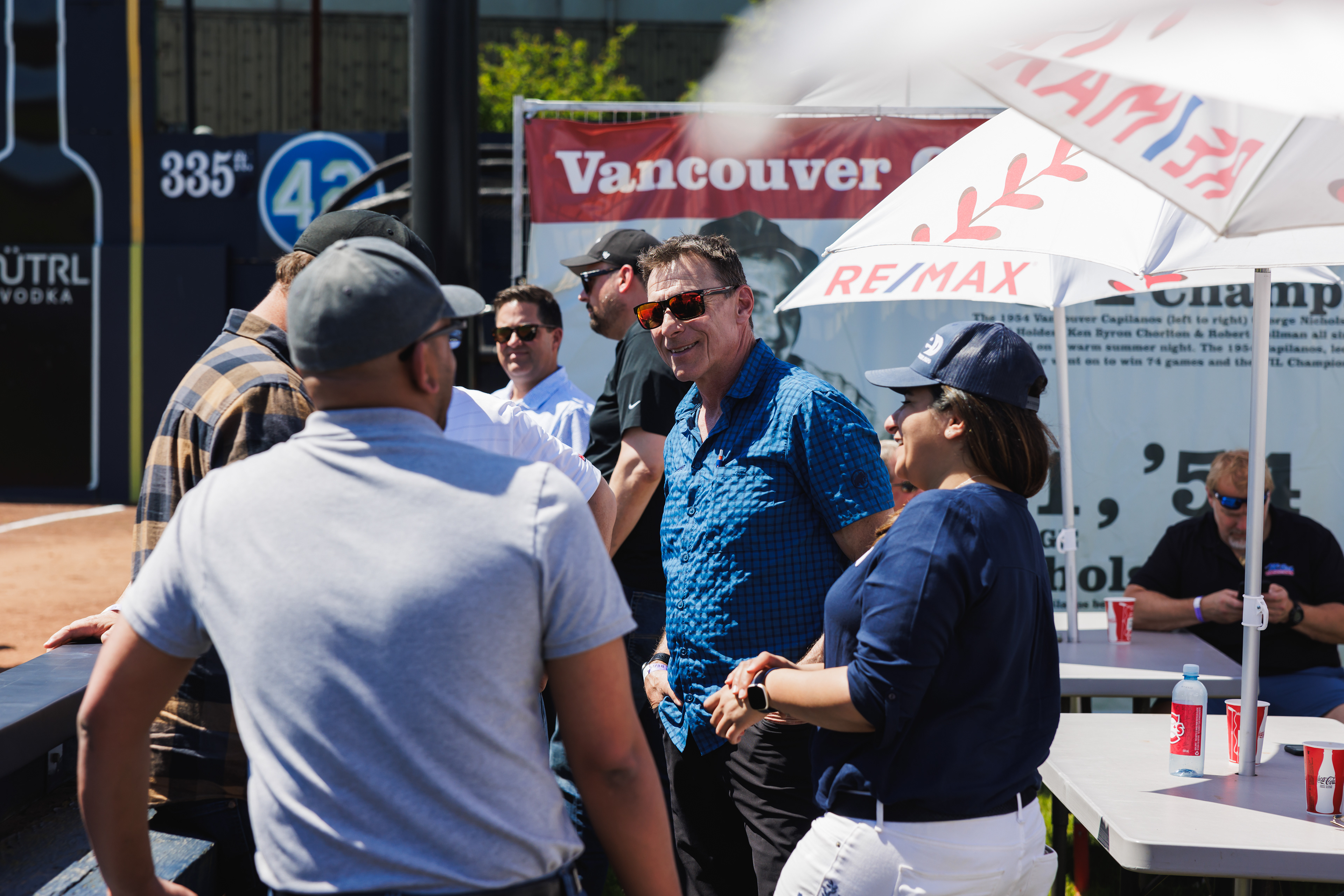 The RE/MAX BBQ Picnic in the Park is a semi-private area at Nat Bailey Stadium where guests can enjoy an all-you-can-eat BBQ picnic feast, drinks & more right beside the first base line.