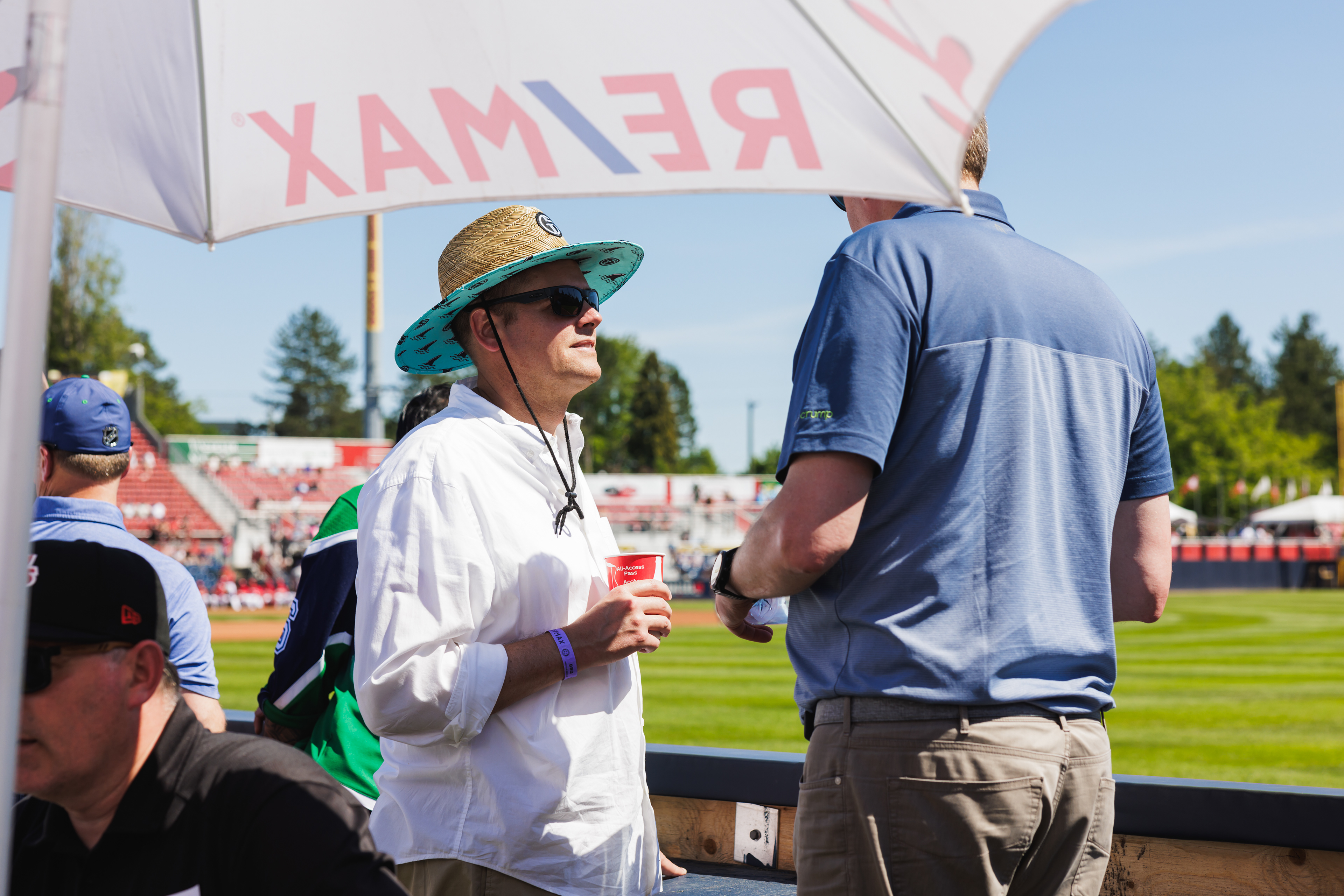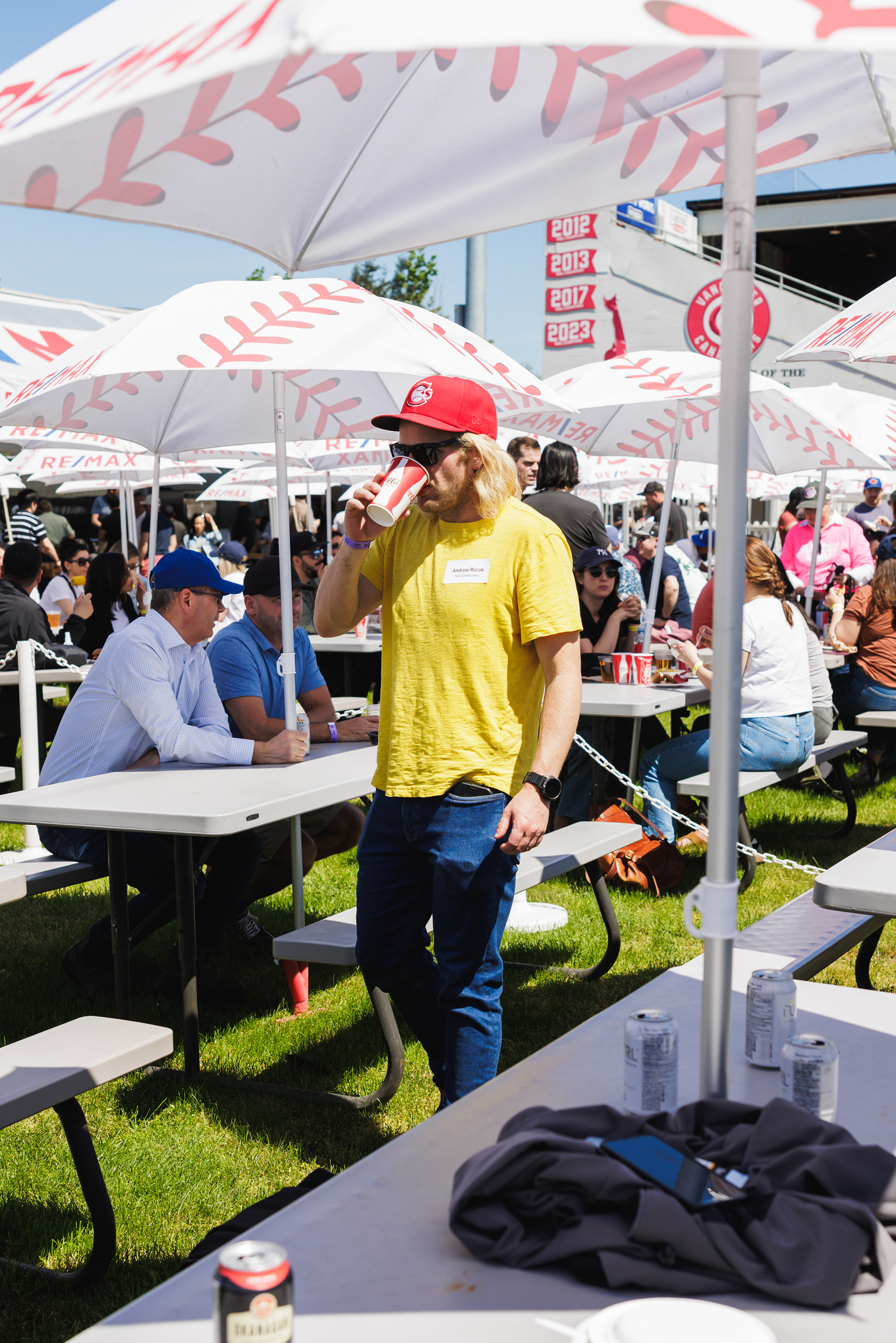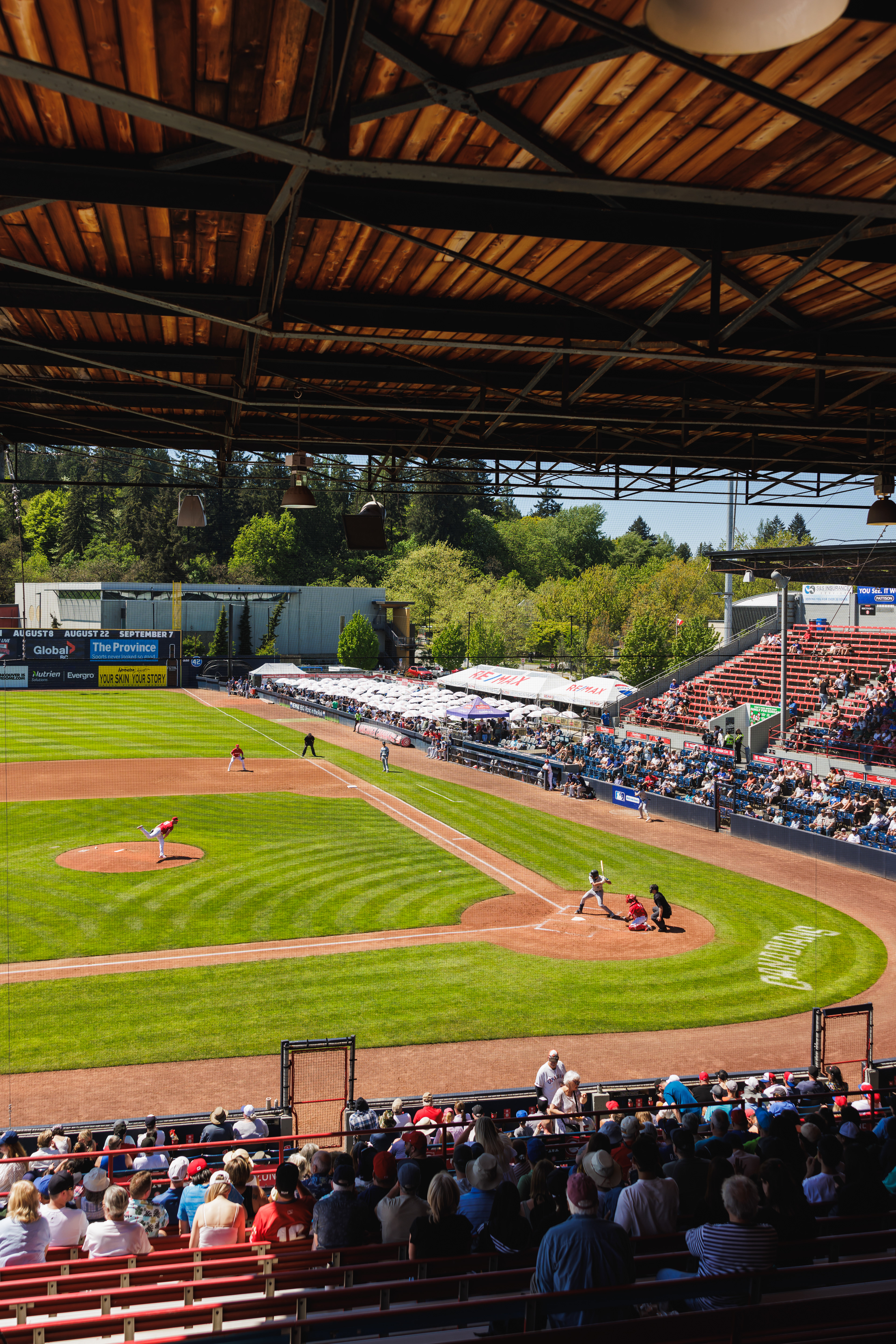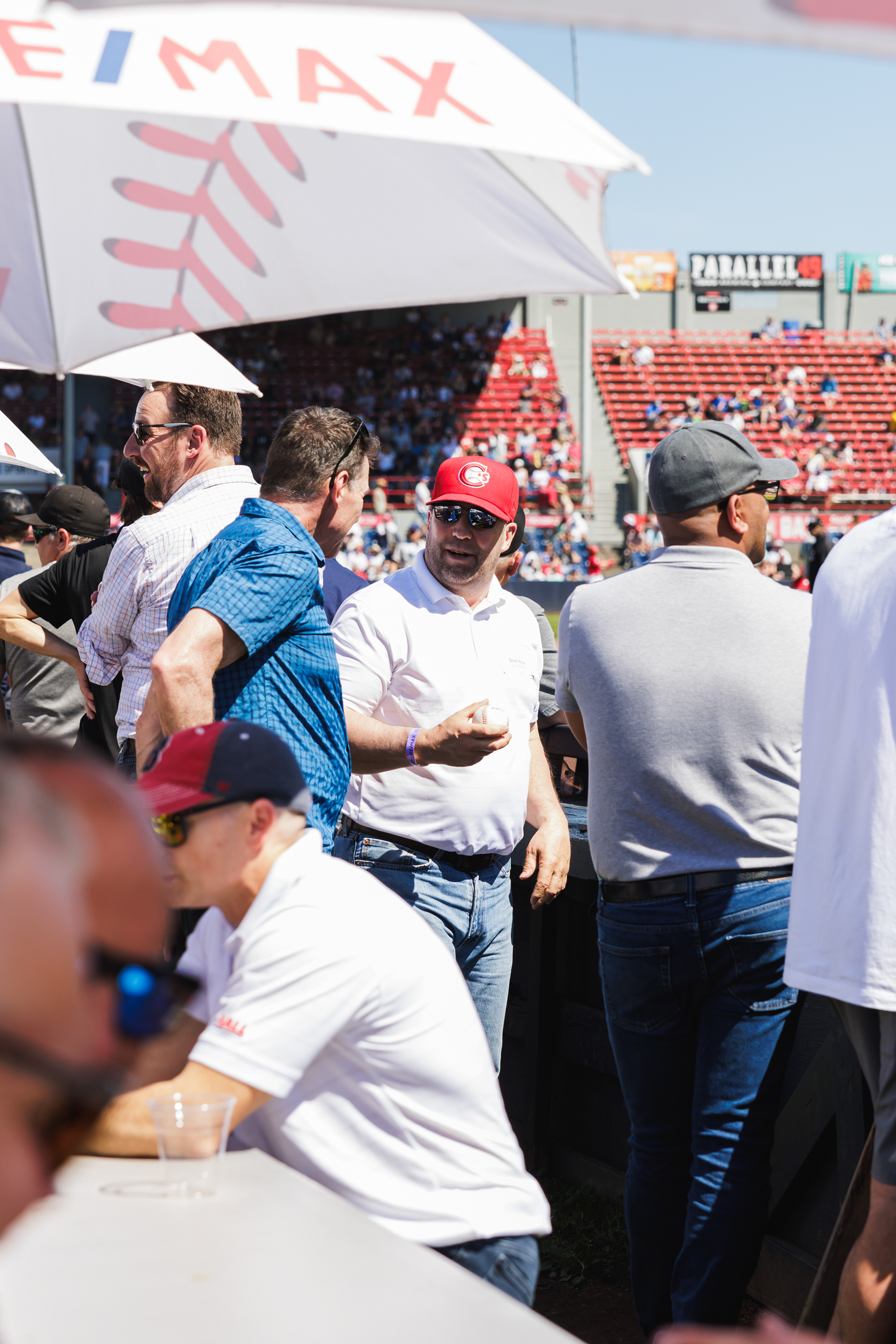 The RE/MAX BBQ Picnic in the Park is a semi-private area at Nat Bailey Stadium where guests can enjoy an all-you-can-eat BBQ picnic feast, drinks & more right beside the first base line.