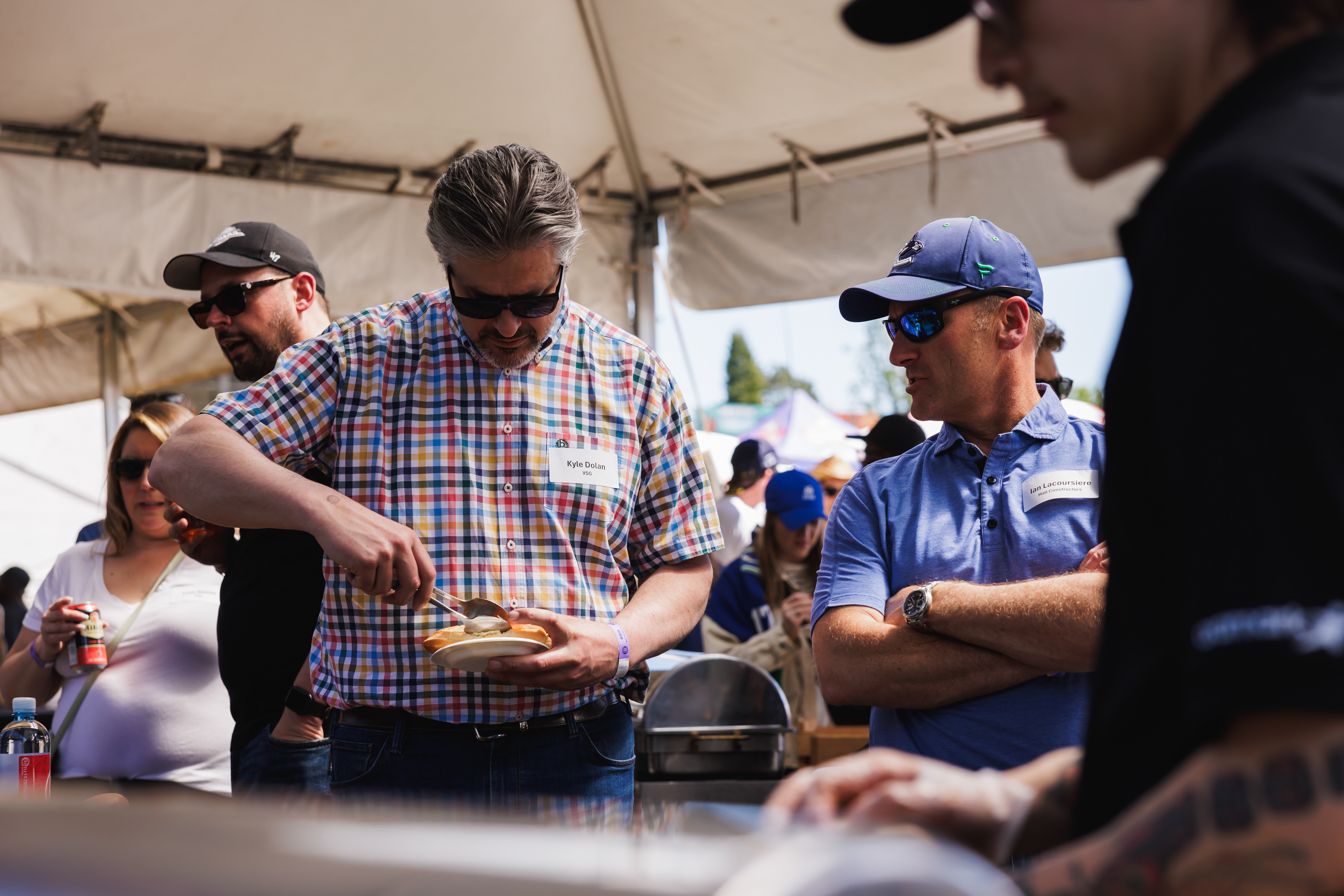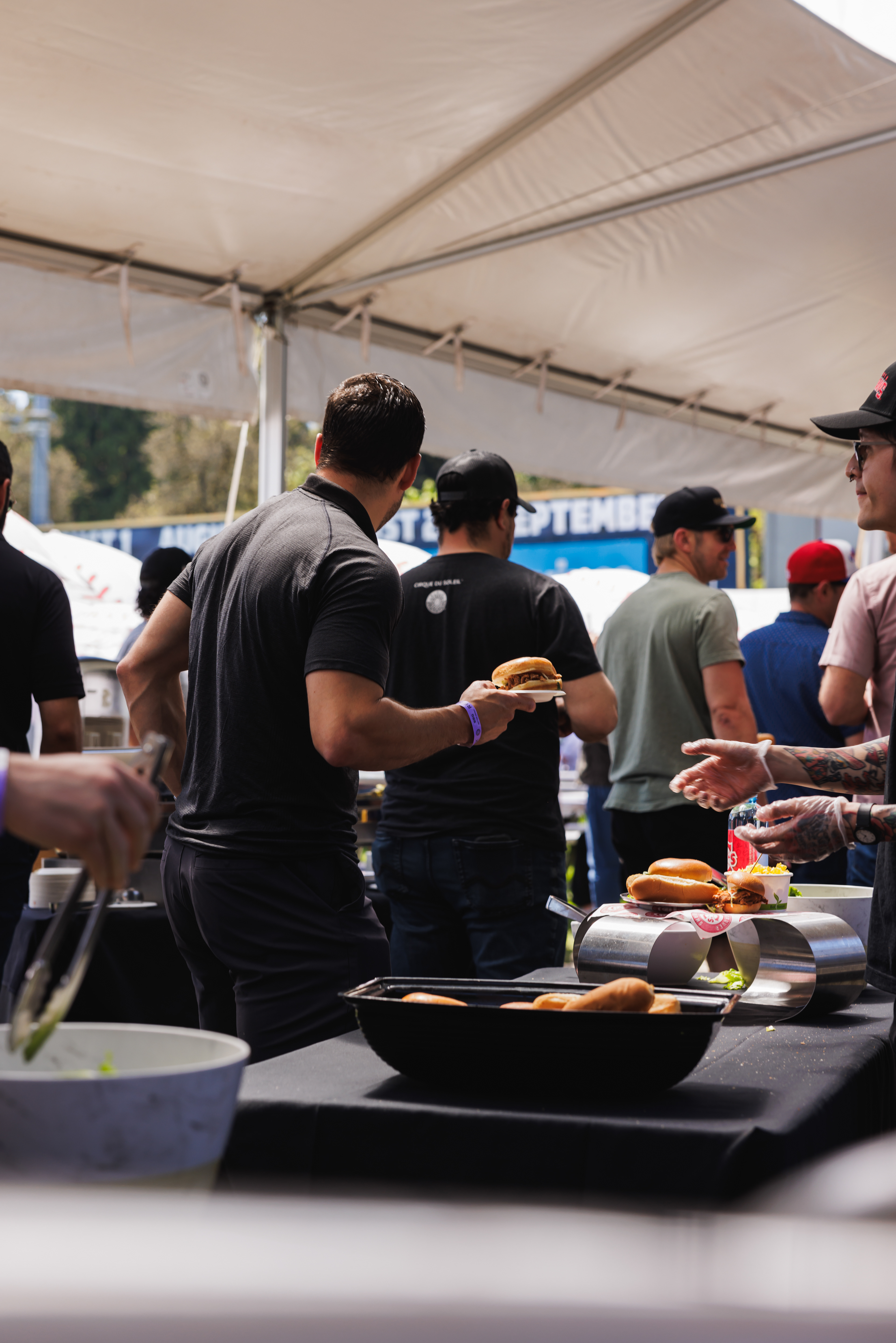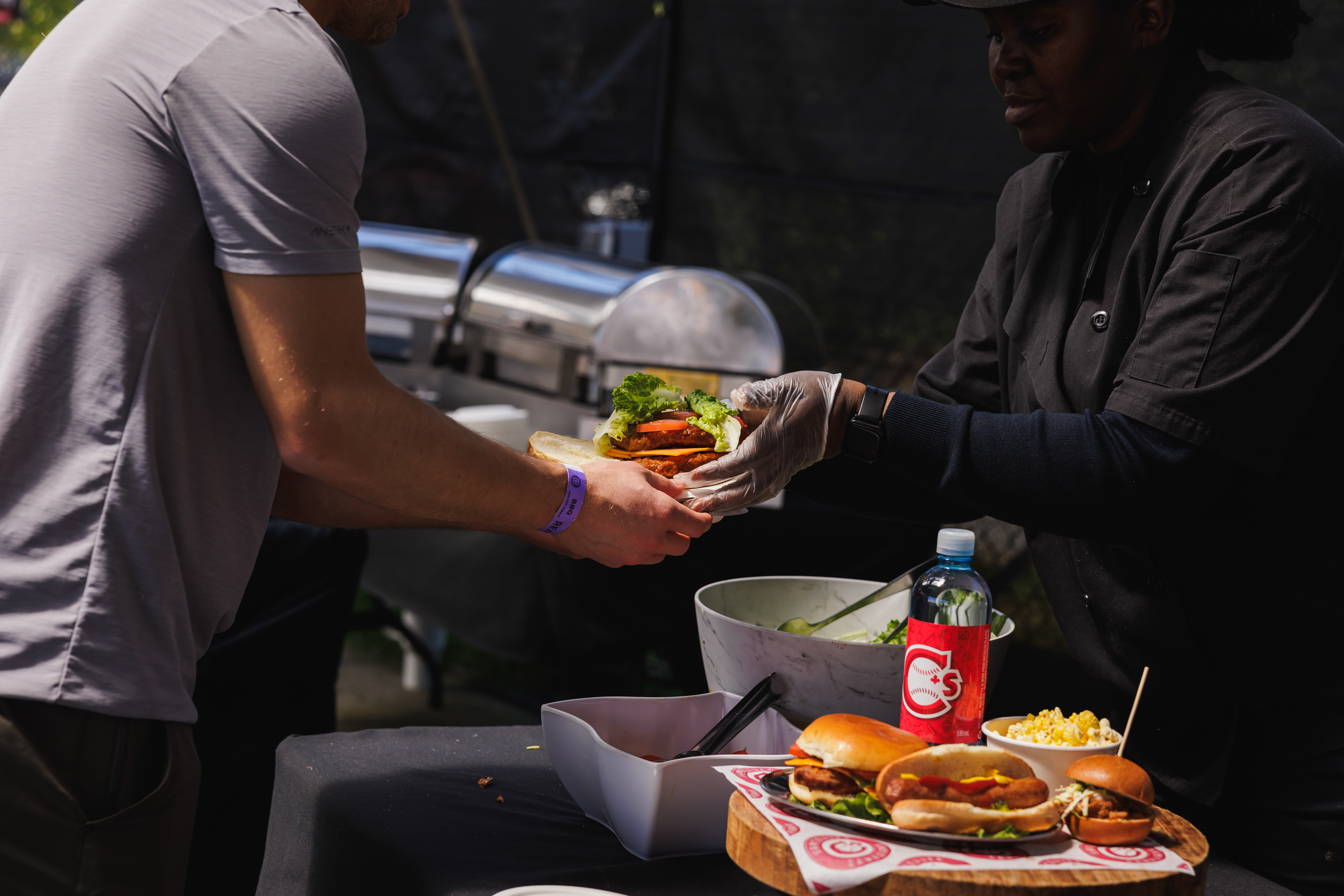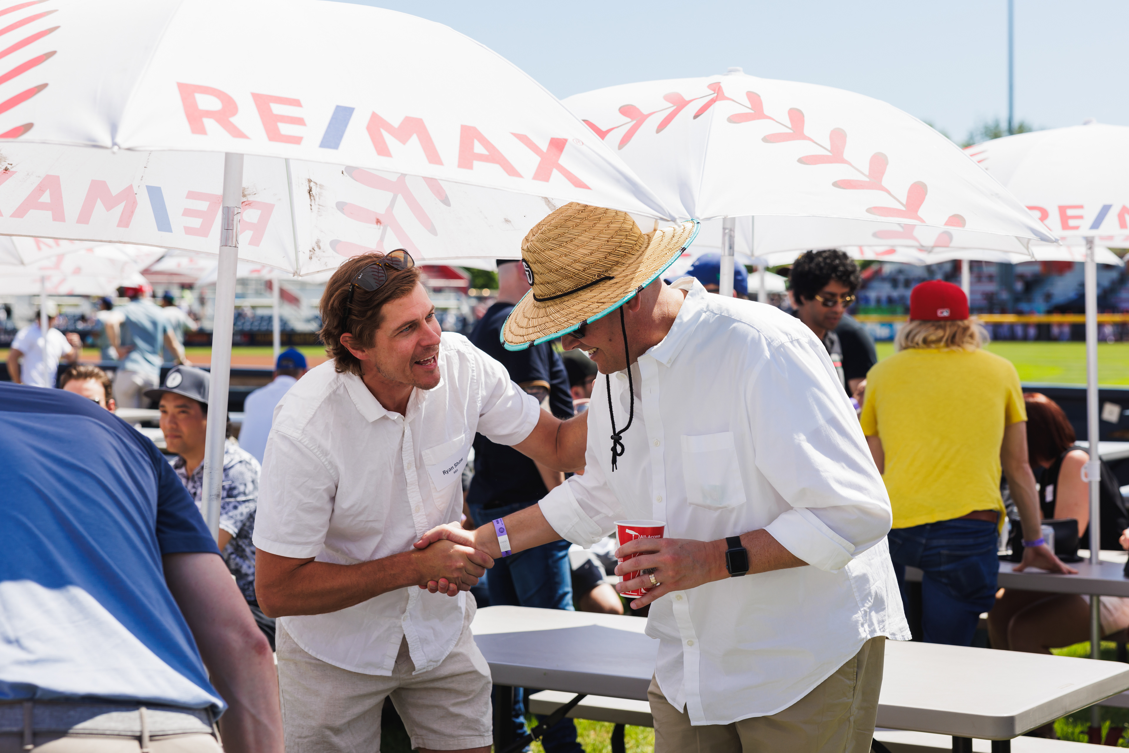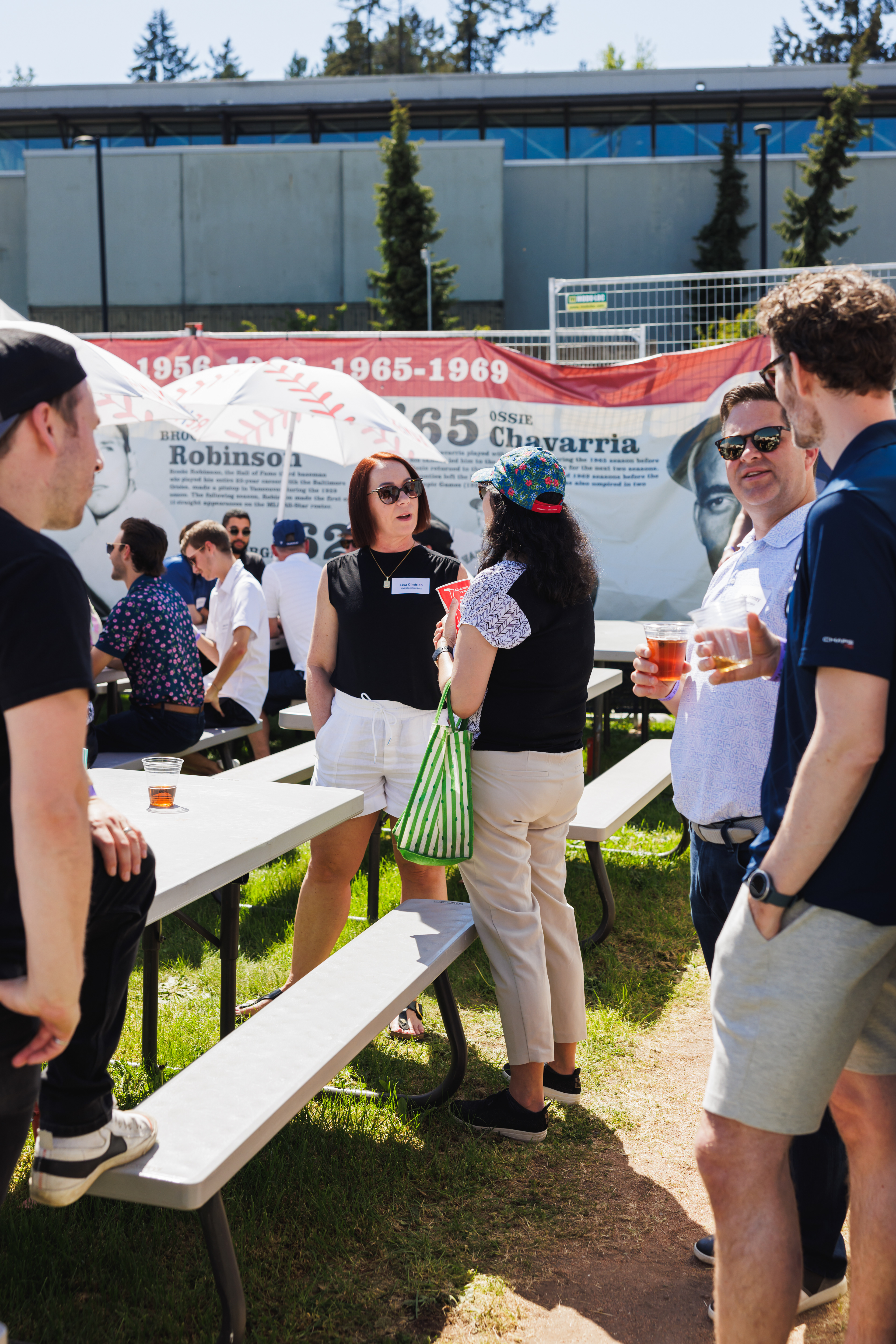 The RE/MAX BBQ Picnic in the Park is a semi-private area at Nat Bailey Stadium where guests can enjoy an all-you-can-eat BBQ picnic feast, drinks & more right beside the first base line.